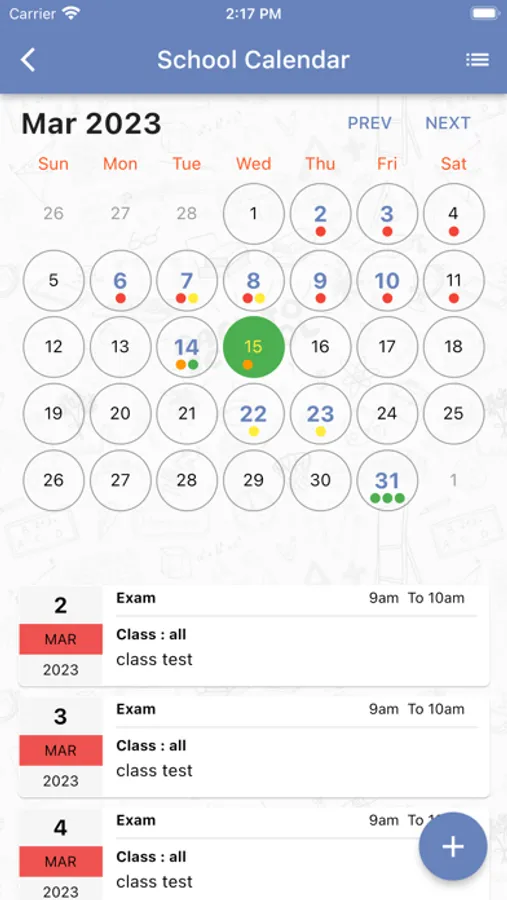 School Calendar - Admin can view the school calendar and also can add events in school calendar.