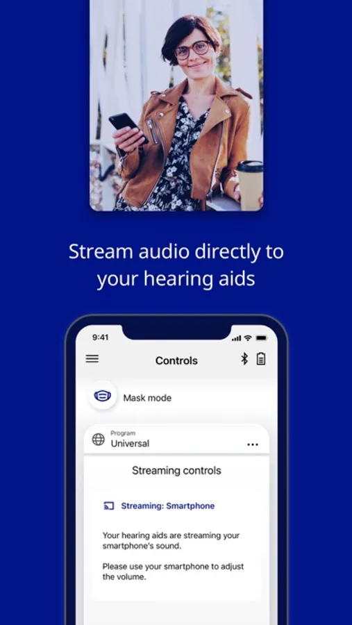 The Audio Service app gives you everything you need to enjoy your hearing aids to the full, and all tailored to your personal preferences: audio streaming, remote control and remote support*. All you need is your smartphone.