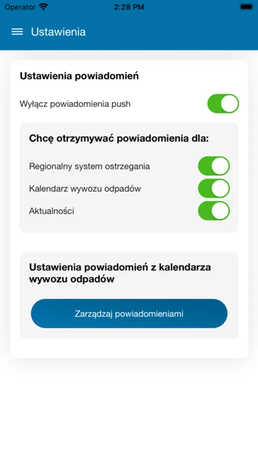 - systemu powiadomień push, abyś mógł otrzymywać ostrzeżenia kryzysowe, przypomnienia o wystawieniu pojemnika z odpadami czy powiadomienia o ważnych aktualnościach