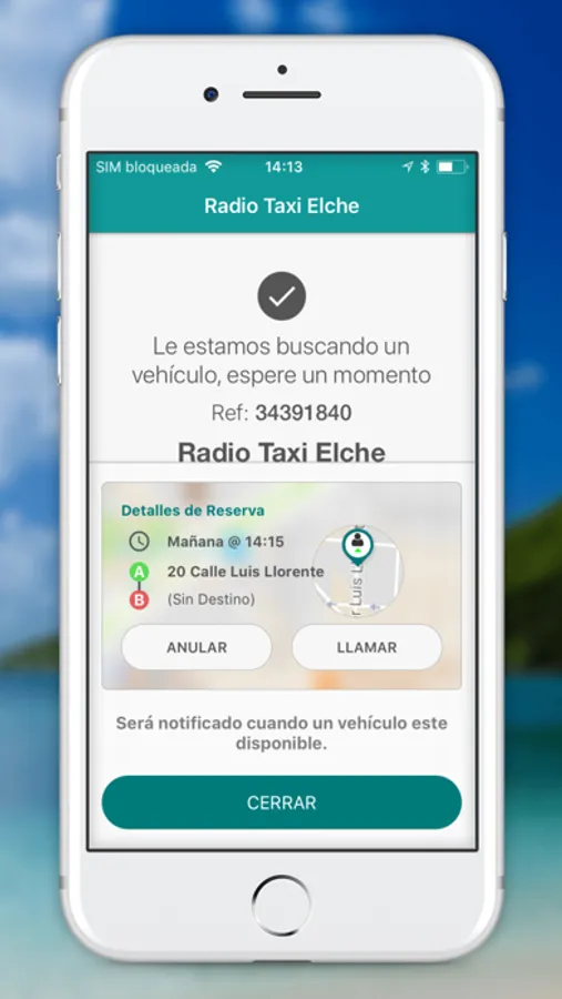 Bienvenido a la aplicación para reservas de taxis “Radio Taxi Elche”.