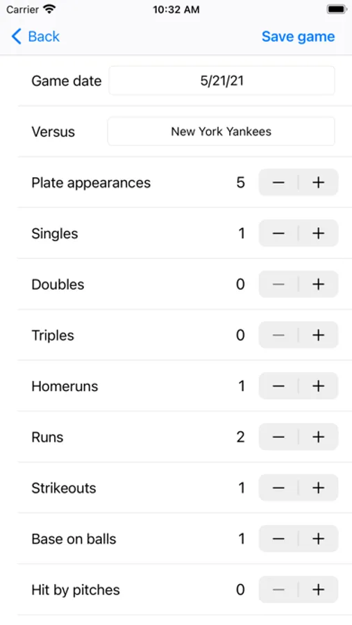 If you want to edit any games played before, just tap the season year and it will take you to an overview of all games played the year. Here you can edit any games you want.