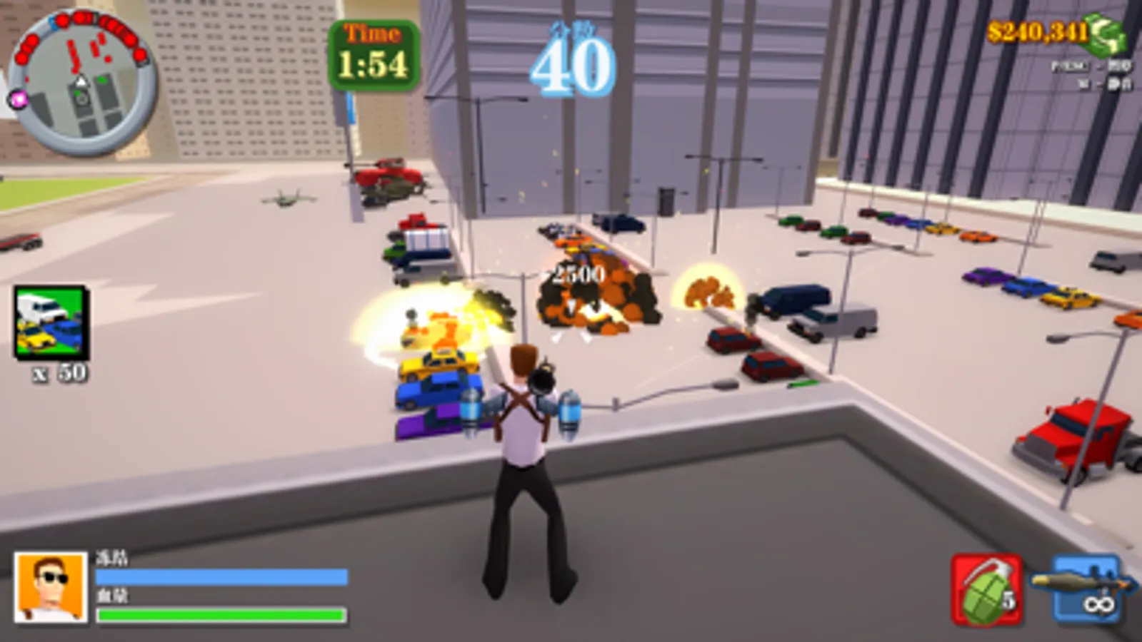 各种好玩的道具,喷气背包,无限子弹,RPG,无限手雷等