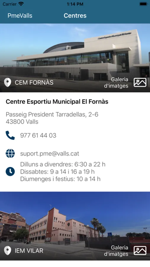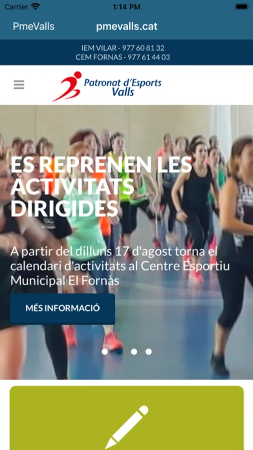 Aquesta aplicació permet l'accés còmode a la informació web i a la plataforma de reserves online del Patronat d'Esports de Valls.