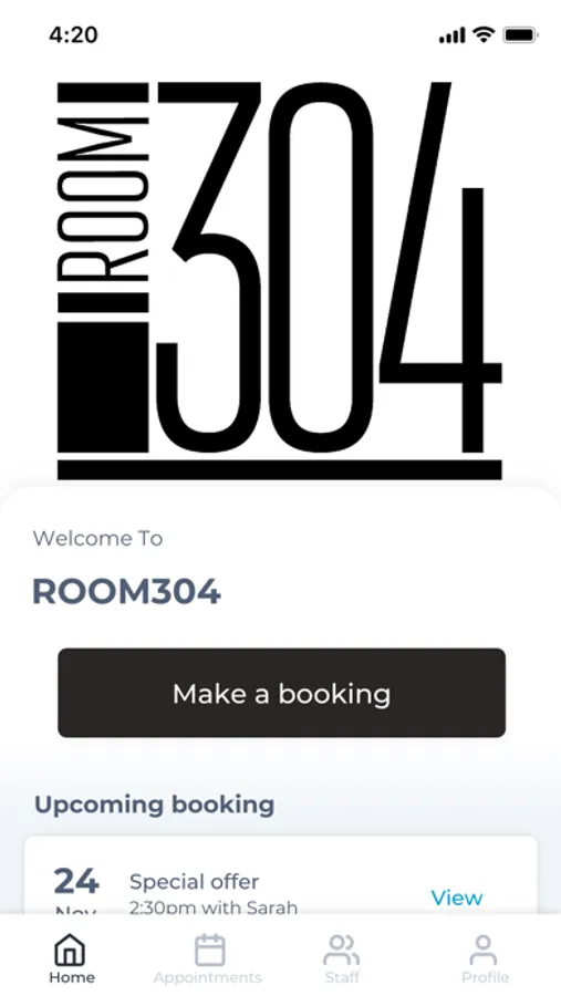 The ROOM304 app makes booking your appointments and managing your loyalty points even easier. You're just a few taps away from feeling good and looking great!