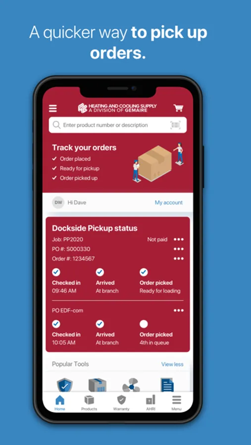 * link to your Heating & Cooling Supply account to view your pricing and order status data, as well as real-time product availability at your preferred branch and other nearby Heating & Cooling Supply branches