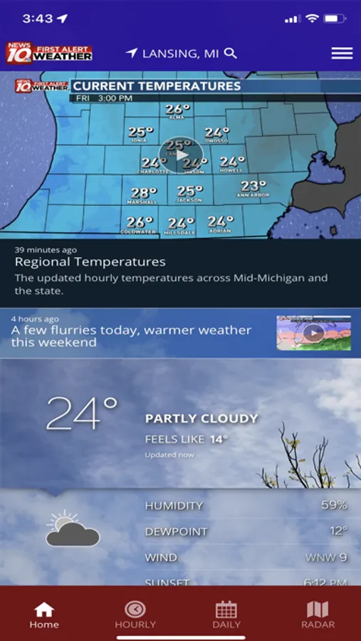 The WILX Weather App includes: