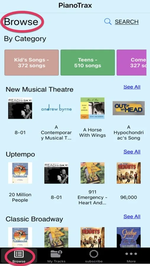 •All purchases made from PianoTrax.com will automatically be available in the app. All purchases from the app will instantly be available in your account on the website.