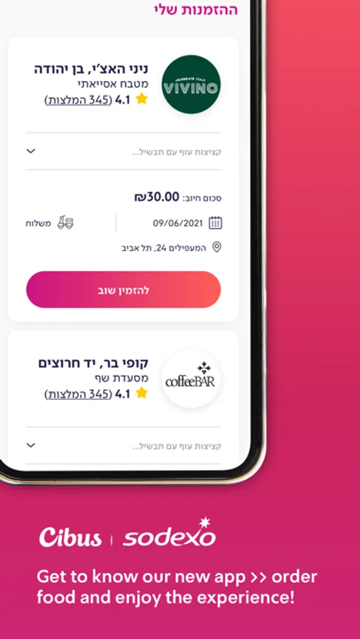 Cibus customers - Through the Cibus Sodexo application you can order meals in the delivery & take away from a variety of restaurants or locate restaurants in your area.