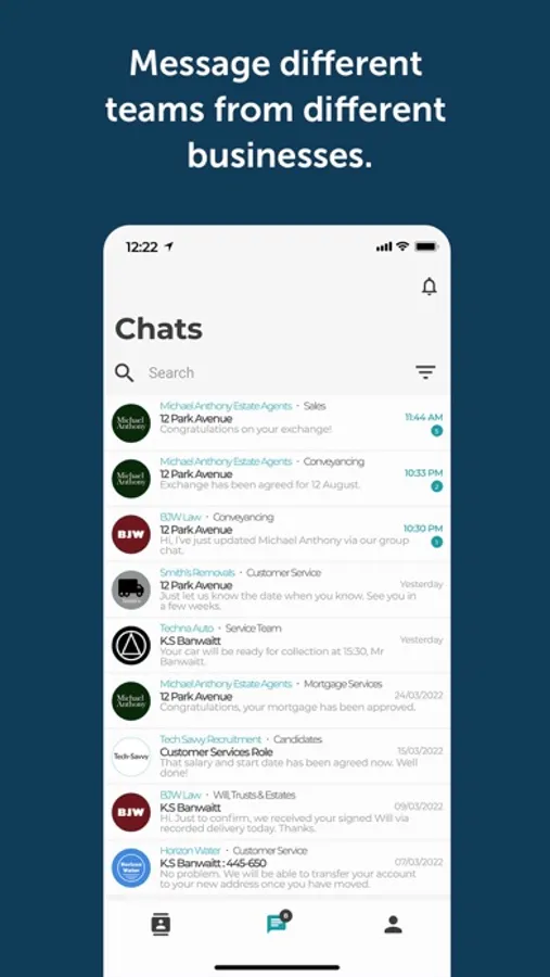 Used for messaging multiple businesses where there is a serious or professional communications need, from buying or letting a home, to setting up utilities or finding a job.