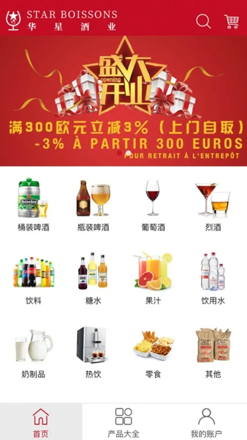 Star Boissons App是一个针对法国市场的酒水饮料批发平台,有中法双语两个版本。我们提供各类酒水饮料的批发销售,您可以通过此APP进行下单(无需在线付款,支持货到付款),并可选择选择送货上门(48小时内)或者仓库自取。