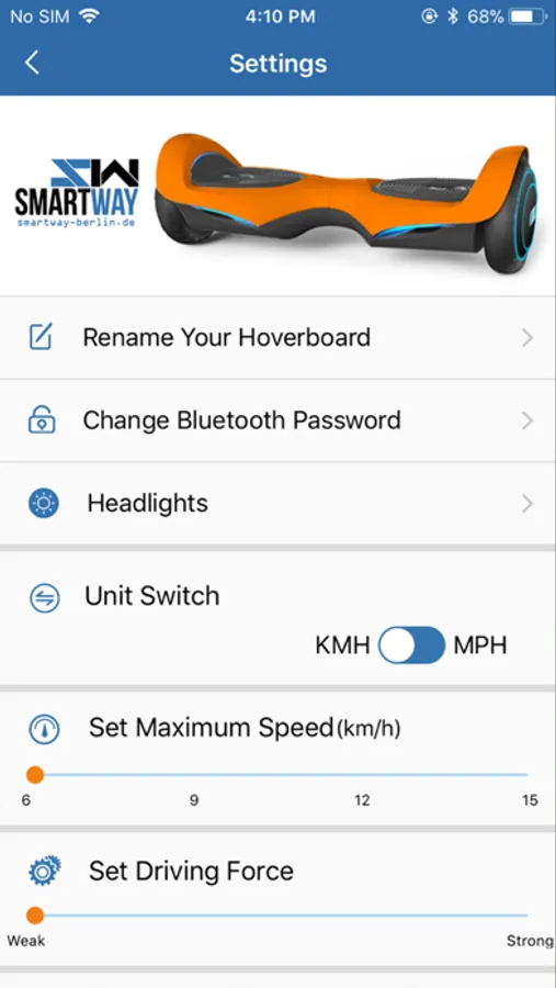 Configure the scooter Bluetooth name and password. Set the maximum speed, driving force, steering sensitivity to make riding more safety.