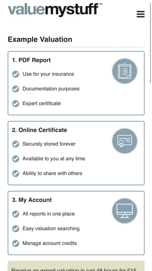 Valuations and appraisals are exchanged for credits. One credit equals one valuation. The more credits you buy, the cheaper it is. A single valuation credit costs just $20 but if you buy our largest credit pack it works out at just $10 per valuation. There's no expiry date of credits either! So you can spread them out and use them whenever you like.