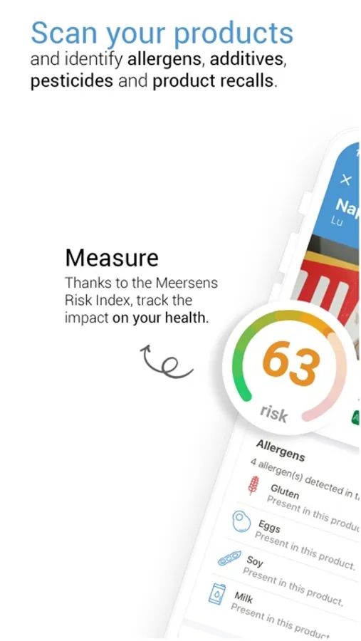 Scan your products for a risk-free diet with Meersens! The app scans the products to decrypt their composition and measure the impact on your personal health. Faced with undecipherable food labels, Meersens brings transparency in seconds, just by scanning the barcode. Meersens looks at: composition / additives / allergens (lactose, eggs, fish, crustaceans, soy, hazelnut, peanut, gluten, sulphites ...) / not recommended products (pregnant women, children, vegetarians ...) / product recalls (health scandals, bacteria, spoilt food, listeria, salmonella, e-coli ...)