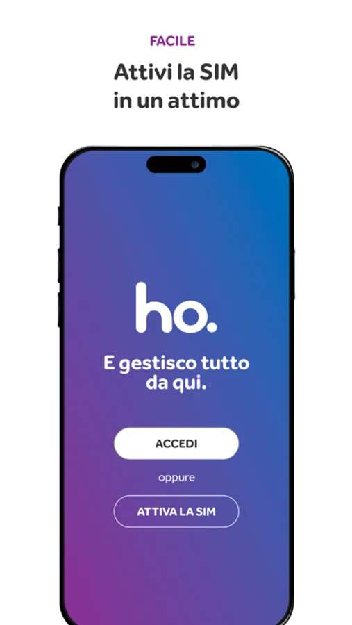 ho. nasce per darti offerte semplici ed essenziali. Scarica l'app ho. per attivare la SIM e gestire la tua offerta dallo smartphone.