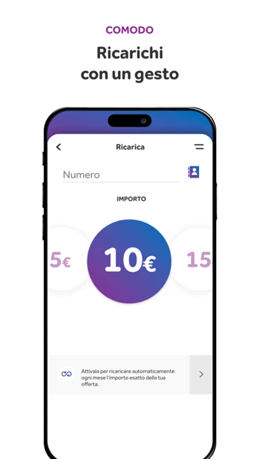 o Ricarichi con un gesto, pagando con carta di credito o PayPal