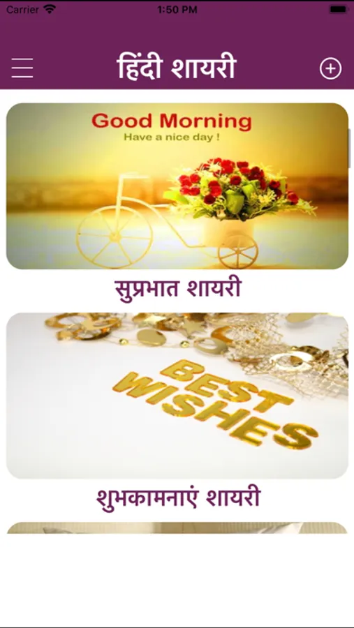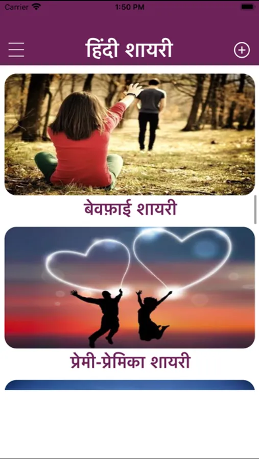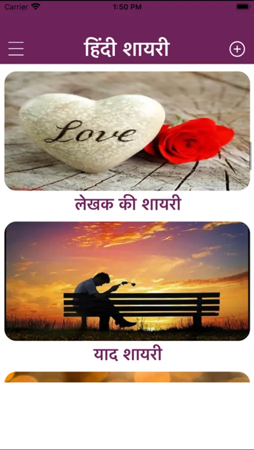 Hindi Shayari app is a great status application having various categories like Hindi,English and Other.