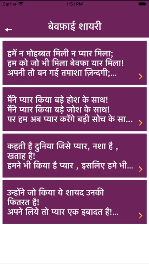 -Latest 10000+ Hindi Shayari app is a great Shayari application having lot of Shayari messages.
