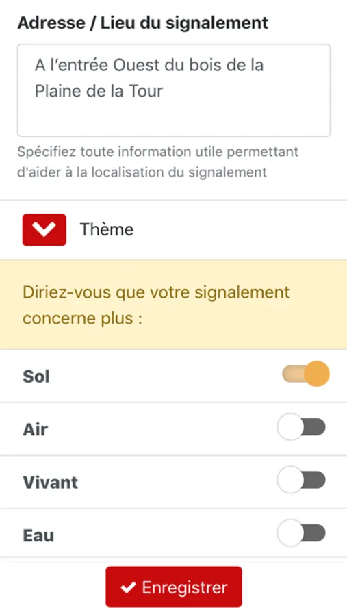 L’application Sentinelles de la nature vous permet de devenir acteur de la préservation de votre environnement. Près de chez vous ou sur votre lieu de vacances, en quelques clics, signalez une pollution, une décharge sauvage, un comblement de zone humide, … Vous avez également la possibilité d’inscrire des initiatives favorables à l'environnement.