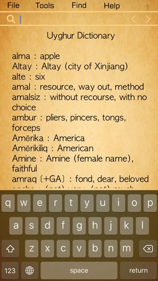 The App uses the Uyghur Latin Yëziqi (ULY) transiliteration system. It is widely used since 2000 and now officially approved by the Xinjiang Language and Script Committee.
