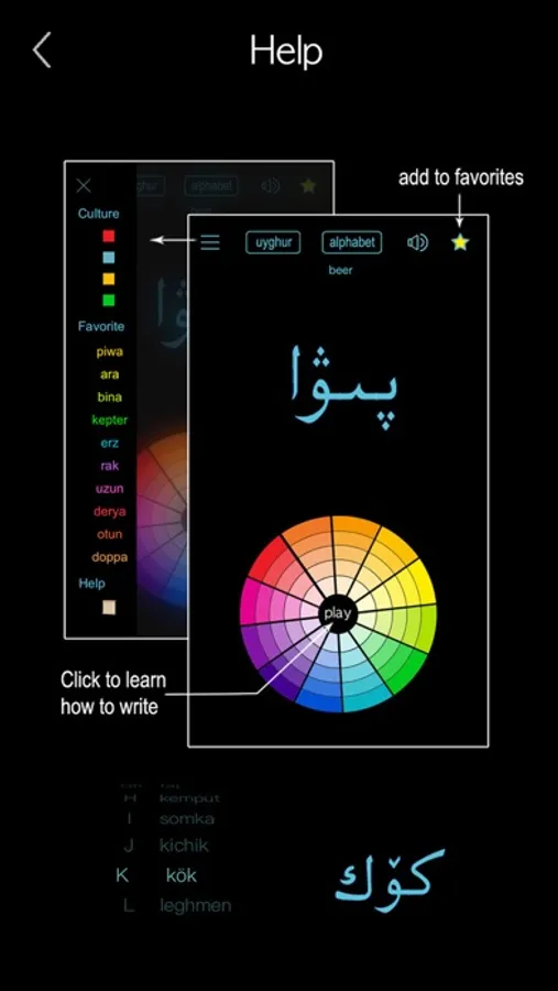 You can also select the word in alphabetical order by clicking “uyghur” in the menu bar.
