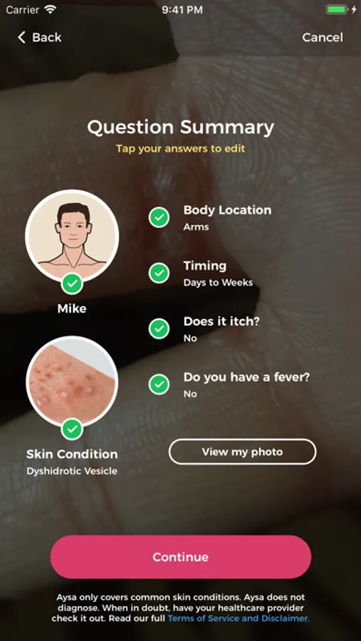From VisualDx, Aysa is the easy-to-use app to get personalized answers to your skin condition questions. Aysa helps you screen your skin symptoms and prepare for your practitioner visit.
