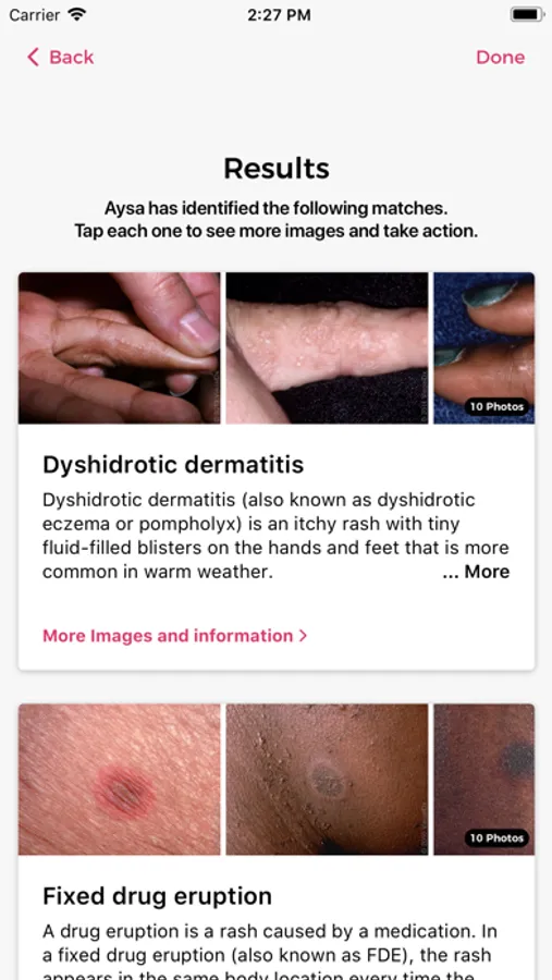 Your skin is unique; skin conditions can look different from person to person. Aysa is built on the resources of VisualDx, the award-winning clinical decision support software focused on equity in medicine for over 20 years. Its curated library of more than 120,000 medical images includes every skin color and type, and what each of 200 skin conditions can look like at every stage. The workflow even allows you to select skin color, ensuring the best information and images possible.