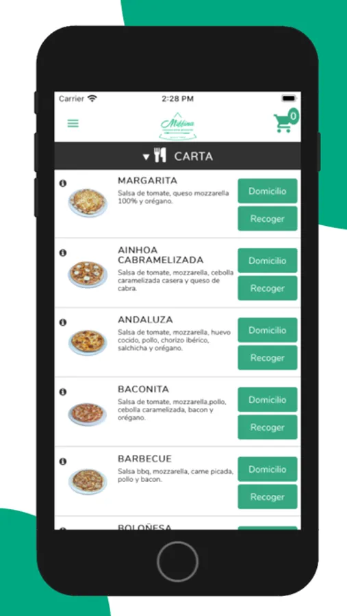 Con nuestra app podrás elegir entre una amplia variedad de pizzas, hamburguesas, bocadillos, deliciosos entrantes, postres...