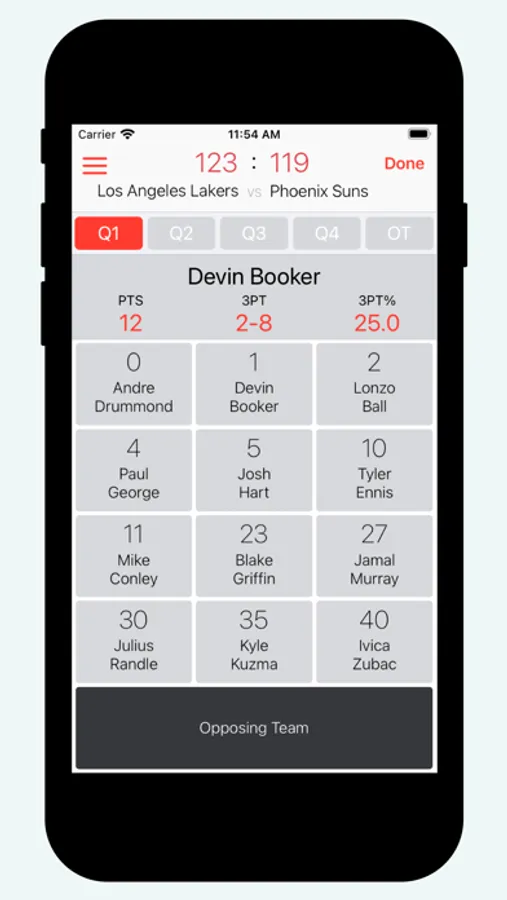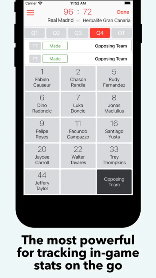 NOTE: Application is designed to track only ONE team stats during the game and not both teams!
