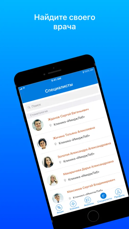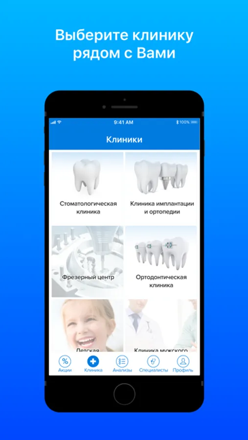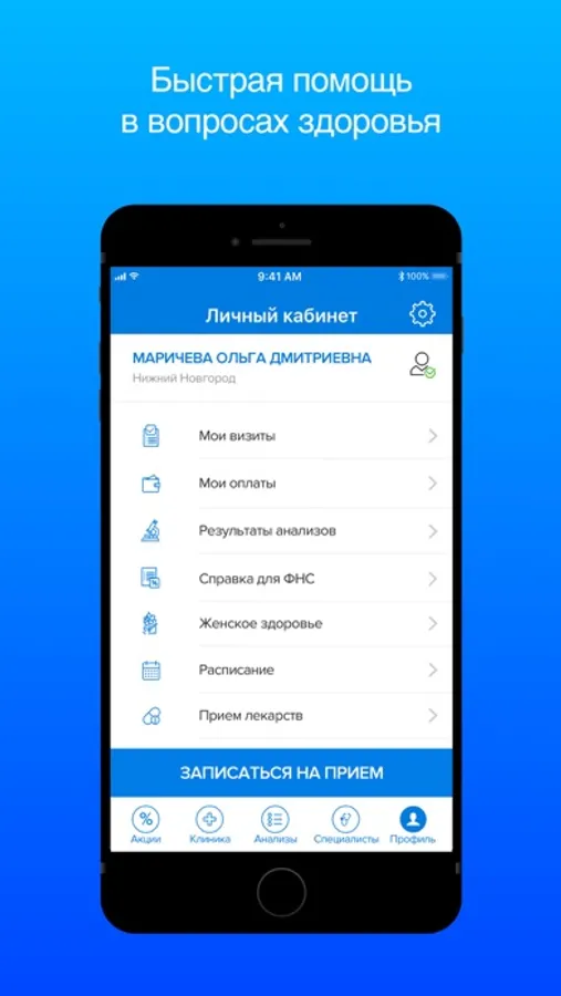 Приложение дает возможность записи на прием к доктору в клинику.