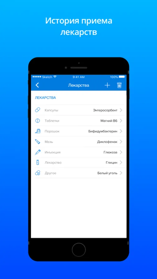 Функция приема лекарств Вам заботливо напомнит о каждом приеме в необходимое время.