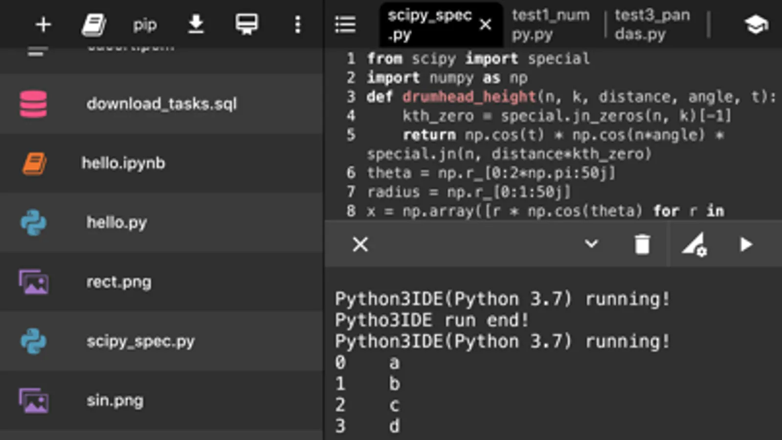 Python3IDE is an offline Python3.7 integrated development environment software with built-in common scientific libraries. It is a powerful helper for you to learn and practice Python.