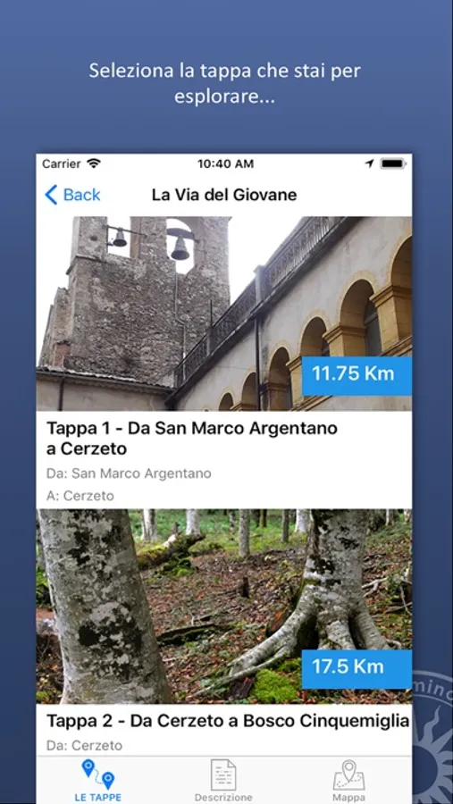 - Il PERCORSO, con la geolocalizzazione delle pietre miliari e delle fonti d’acqua.