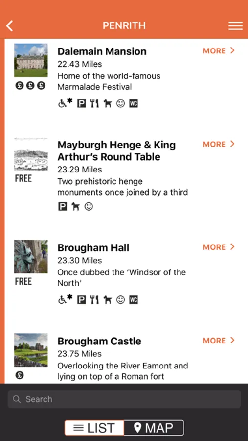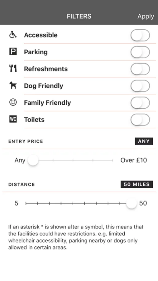 The App has a list and map view and contains filters for key features such as accessibility, parking and family friendly.