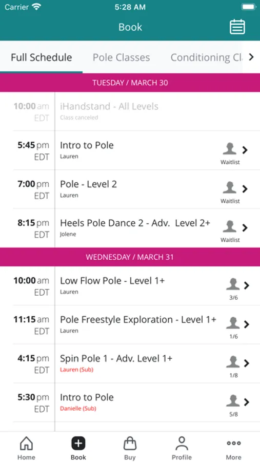 View your scheduled classes and waitlist reservations