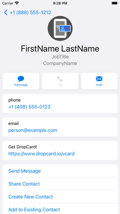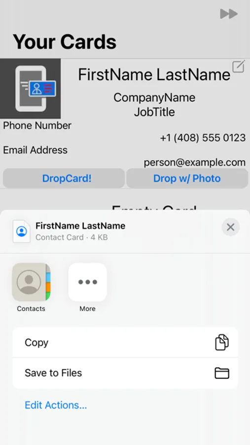 Tap on a slot, DropCard will show you "Your Card" a contact editor.