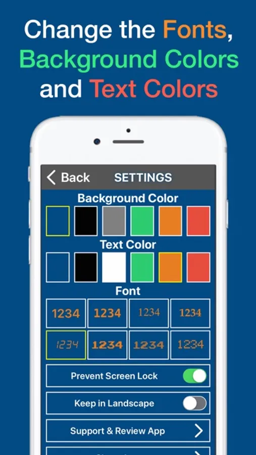 Fully customizable display with 6 Background Colors, 6 Text Colors and 8 available Fonts.