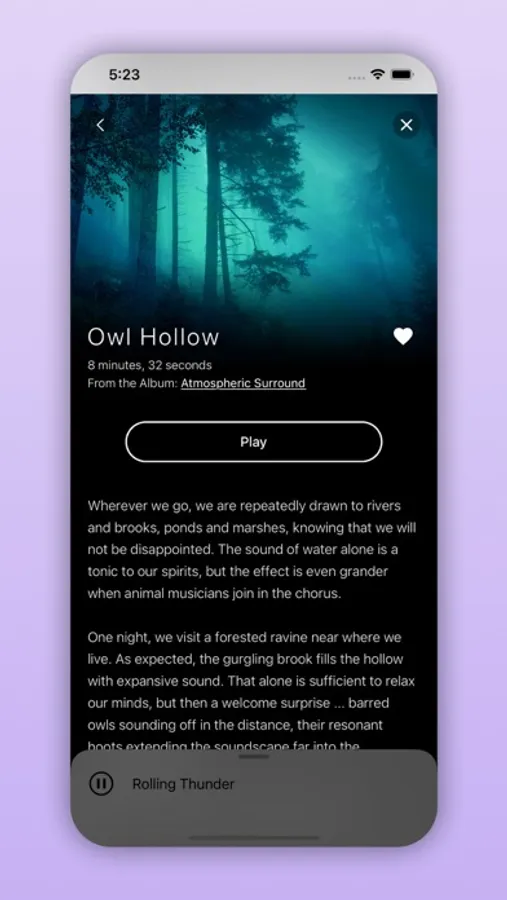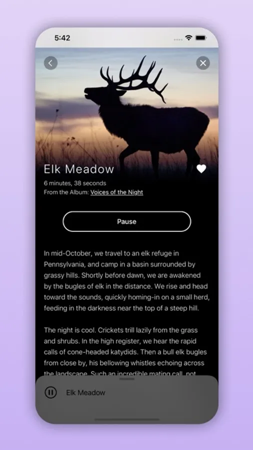 Designed primarily for headphone listening, this app features over 110 spacious 3D binaural soundscapes, meticulously gathered by recording artist Lang Elliott in wild areas across North America and beyond. Audio quality is superb throughout.