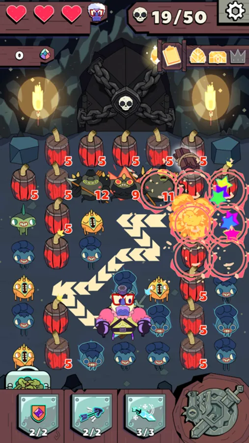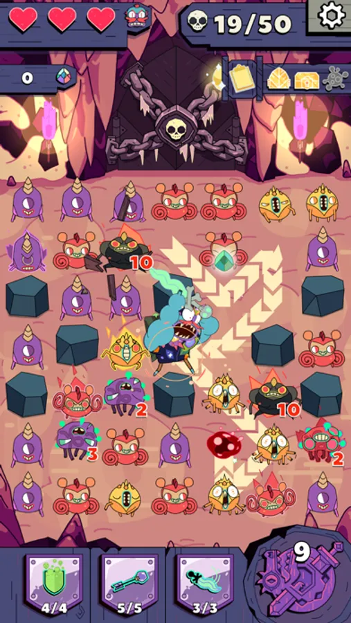 It’ll take sharp puzzle skills and an even sharper blade to cleave your way through the swarms of bloodthirsty Creeps dwelling within Grindstone’s dungeons. Battle bosses, loot resources, discover long-lost blueprints for powerful gear, all while cleaving the innards from your deadly foes! Now with more than 200 levels of intense puzzle-battling madness!