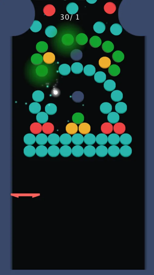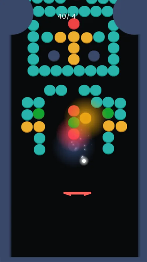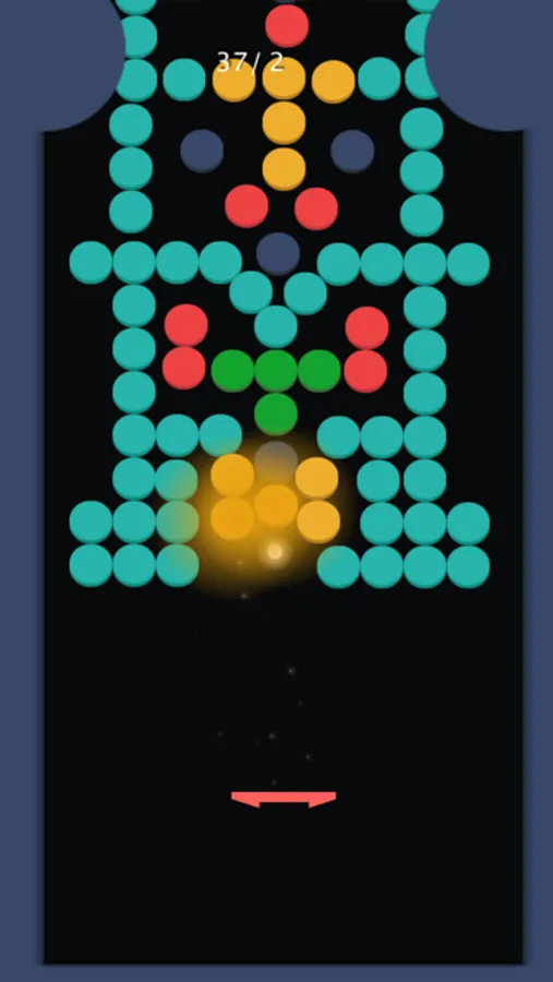 BrickBal: Super Breakout begins with single Color of Circle bricks Balls, with each Level you complete the target needed of balls a different color. The color order from the bottom up is Blue, Red, Green and Yellow.