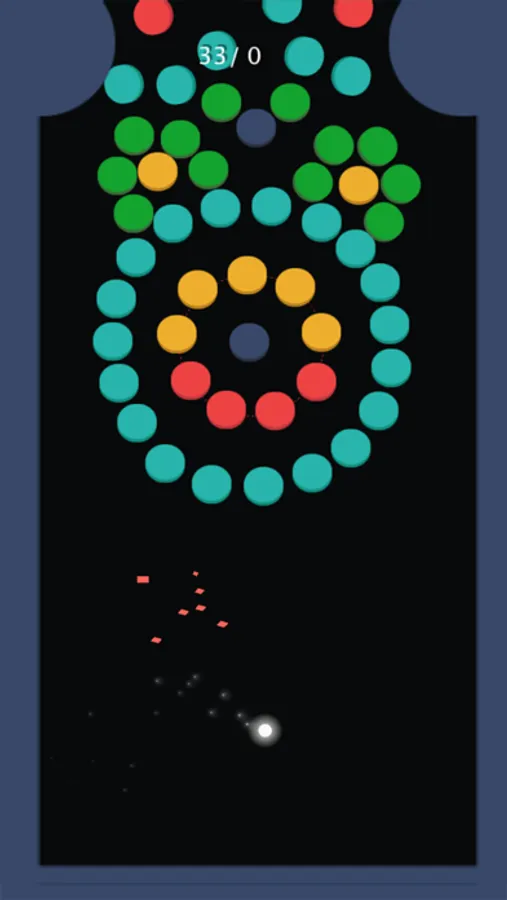 Using a single ball, the player must knock down as many Brick Balls as possible by using the walls and/or the paddle below to ricochet the White ball against the the Colored Balls and eliminate them. With each level there is target of Balls to hit, each color needs different hits, If the player's paddle misses the white ball rebound, he or she will lose a turn.