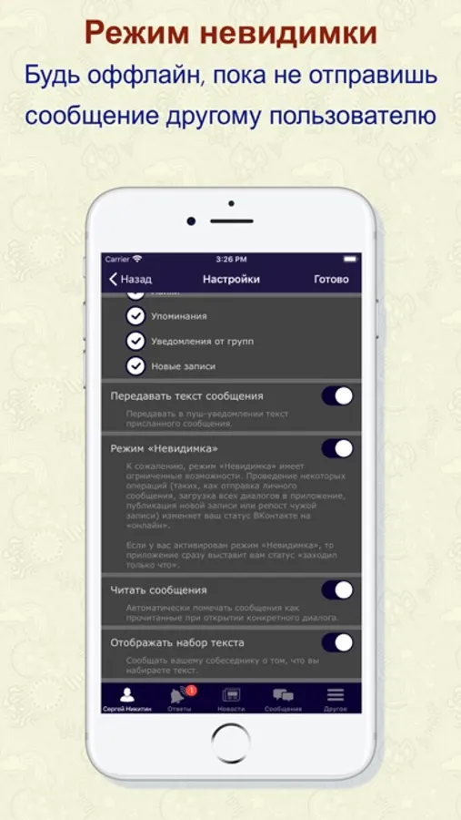 и все это в режиме "Невидимка" (если захотите) или в стандартном режиме "онлайн".
