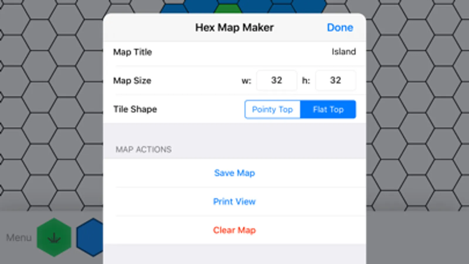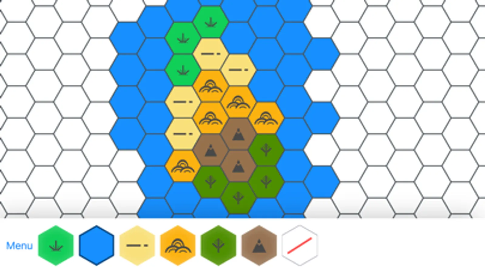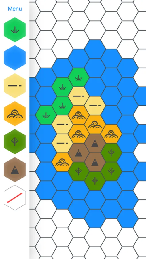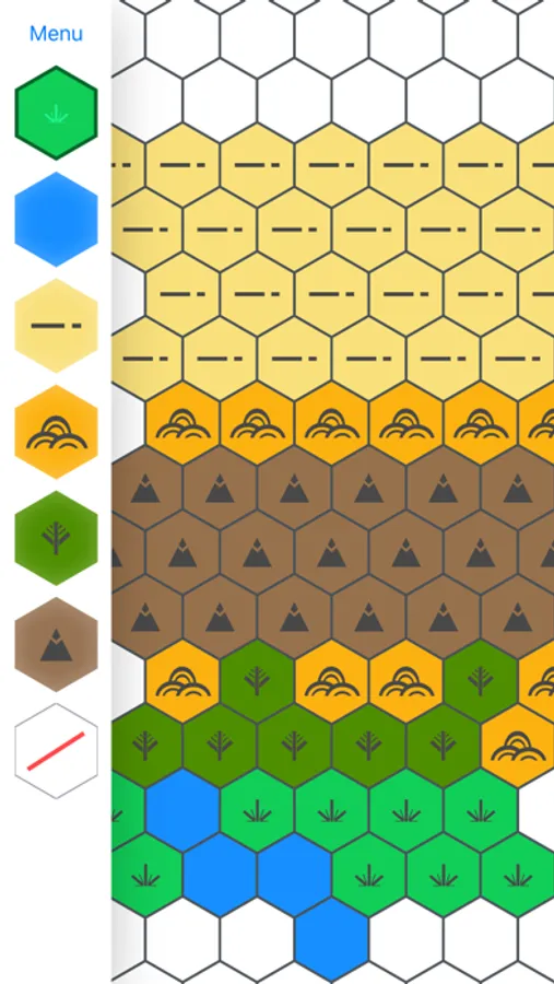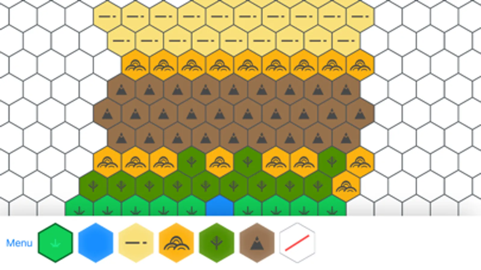 Hex Map Maker is designed to make maps similar to those from the old Dungeons & Dragons® Expert set for use in pen and paper role-playing games. Use the symbol picker to choose a symbol and then tap on the hexes to see your map take shape. Make a mistake? Just pick a different symbol and tap the hexes to change.