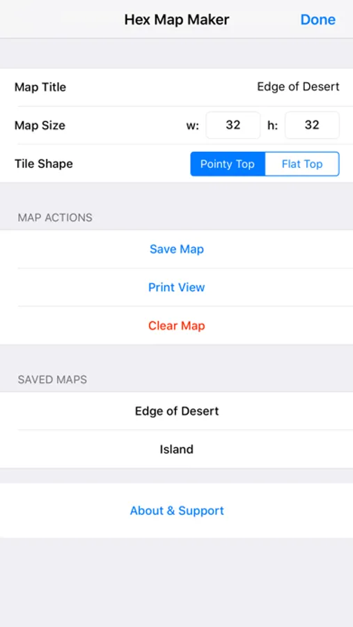 * Make maps of any size by choosing the number of rows and columns from the menu.