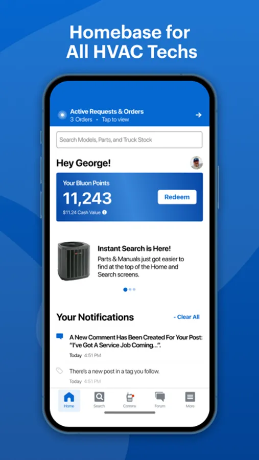 Bluon helps you finish jobs at warp speed. Search our database of 500,000 HVAC models for manuals and part lists, and easily check price and availability from your local supplier! Use our 24/7 field support to get help from our HVAC veterans, and stay connected with your team while on the job.