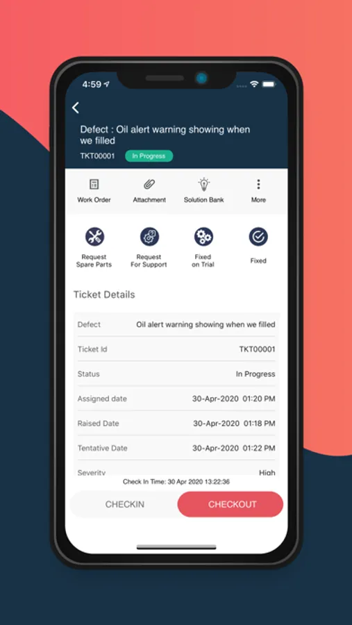 From your app you will be able to view the equipment details, defect solutions data bank to help the service engineer to resolve issue quickly, request for spare parts that are necessary for service and much more. Service Engineers can instantly get the directions of customer's location using google maps