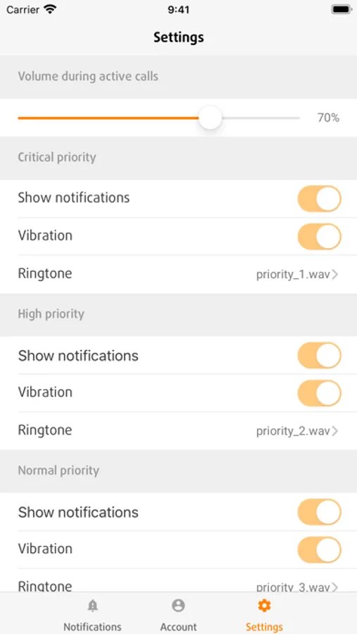 Notifications are displayed to the end-user with different options for different priorities