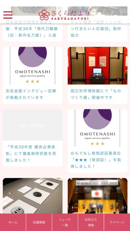 “Sakuradayori” is official news app from Mokumeganeya for the customers.