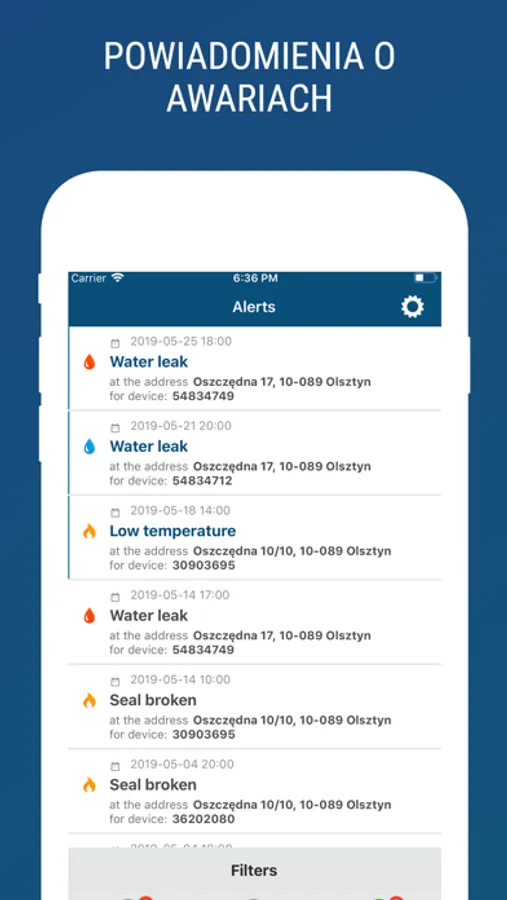 ALARMY - aplikacja powiadomi Cię o zdarzeniach niepożądanych, np. o wyciekach czy awariach.