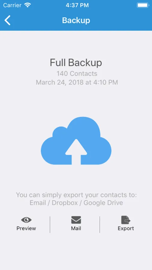 Contacts Backup app allow to take backup of your contacts in one tap! Easy to send backup as email attachment.