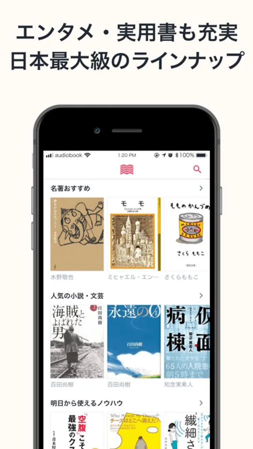 audiobook.jp(R) は、耳で楽しむ新しい読書アプリです。通勤中や家事をしながらでも、オーディオブックなら音声で読書を楽しめます。